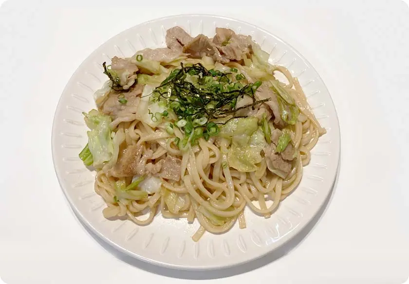- ③ 湯がいたラーメンを水切りし、器に盛ります。